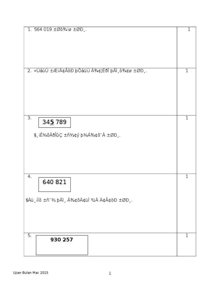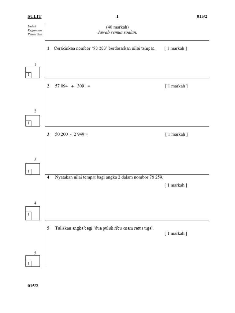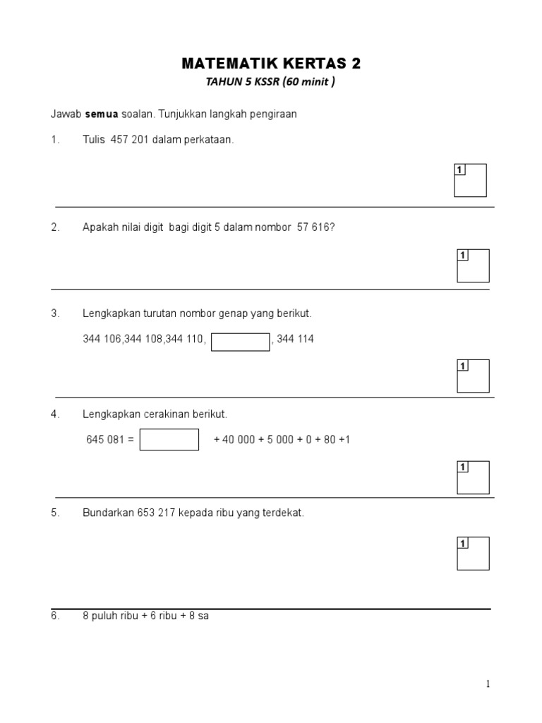 Kertas Ujian Matematik Kertas 1 Tahun 5 Kssr